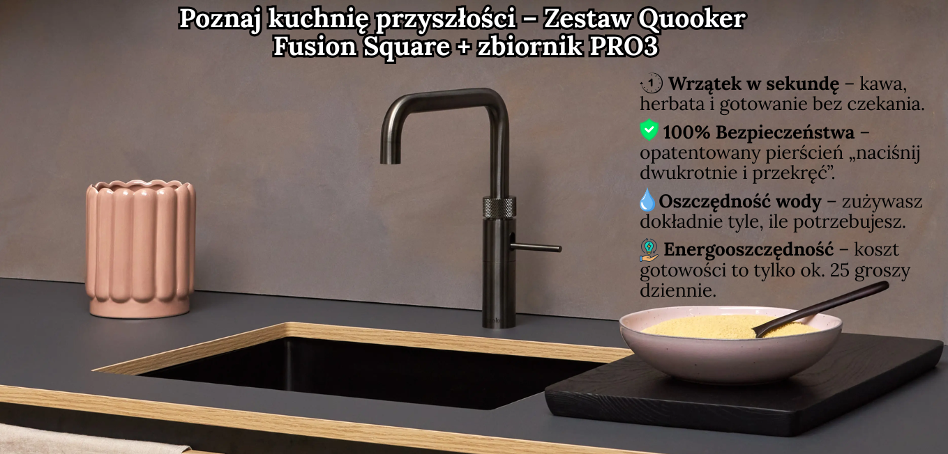 Wszystko zaczęło się w 1970 roku w Rotterdamie. Henri Peteri, pracujący wtedy nad zupami błyskawicznymi, doznał olśnienia: po co czekać na wodę, skoro można ją mieć gotową zawsze? Tak narodził się pierwszy na świecie kran wrzący. Quooker to firma rodzinna, która od ponad 50 lat udoskonala jedną, genialną ideę. Wybierając model Fusion Square, nie kupujesz tylko baterii – kupujesz dziedzictwo inżynierii, która zmieniła oblicze nowoczesnej kuchni na całym świecie. To oryginał, którego nikt nie zdołał doścignąć.